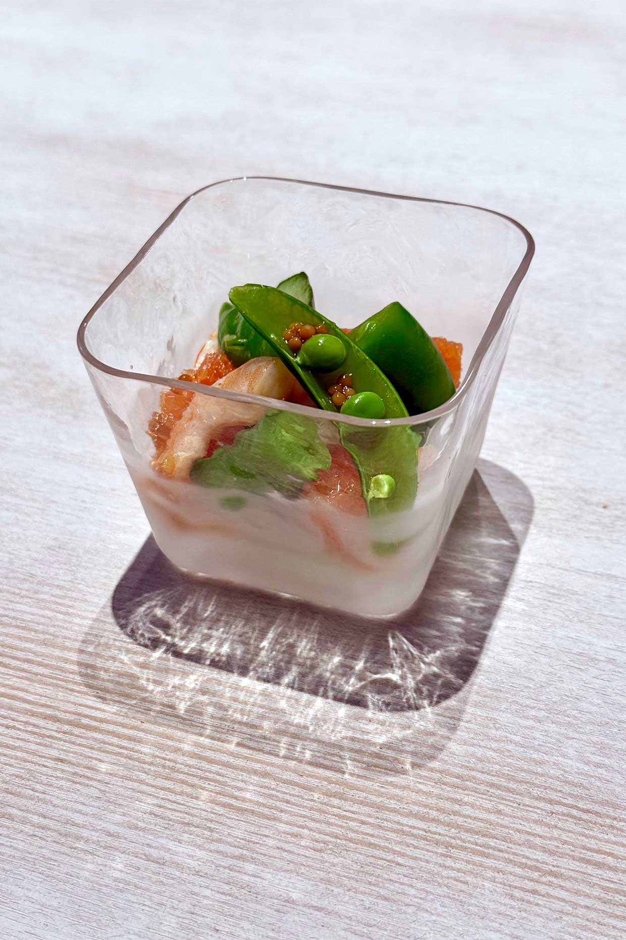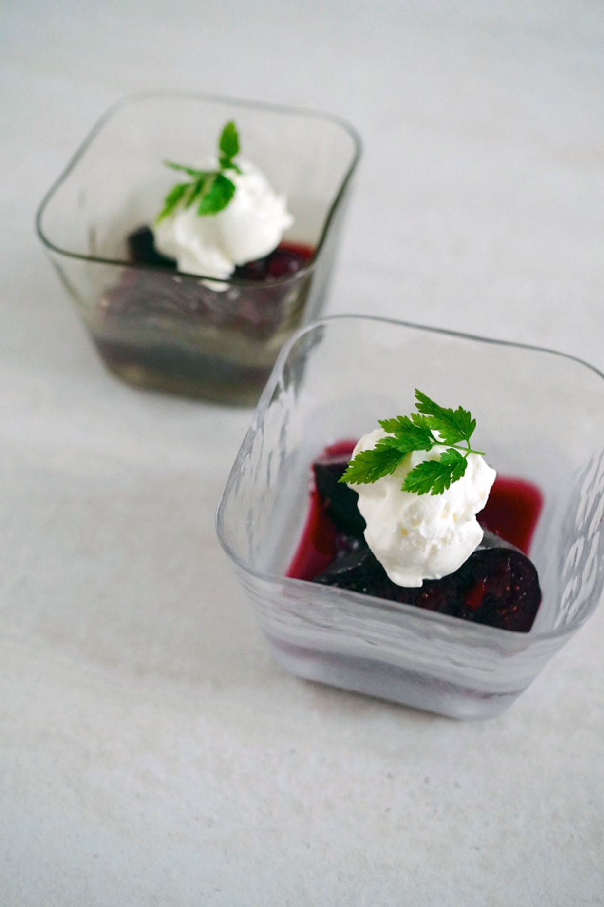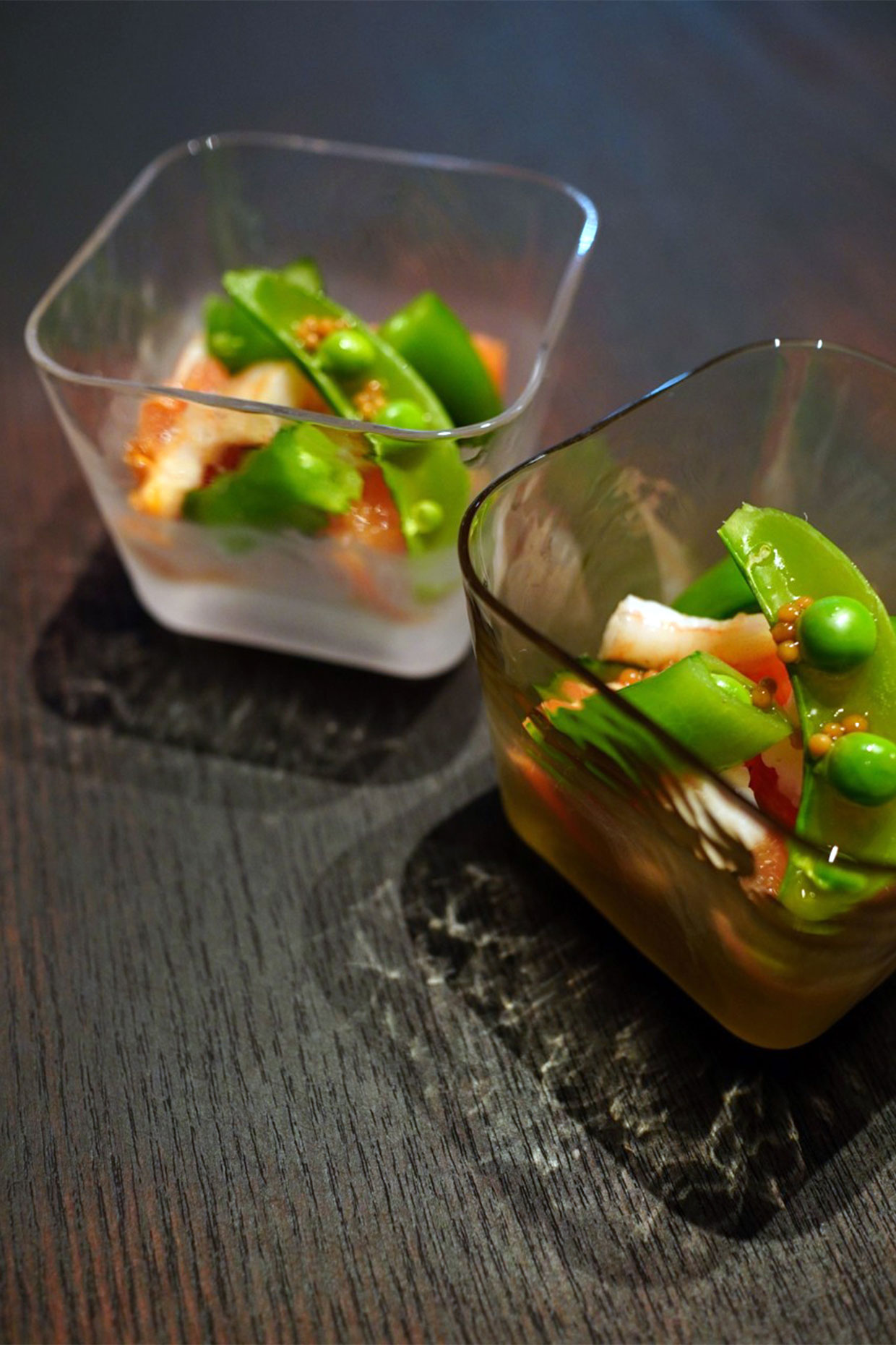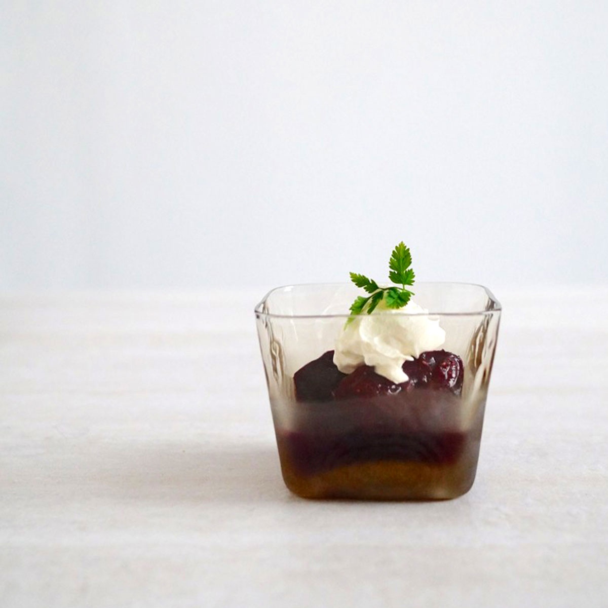 上下のガラスをクリアと不透明に分け、ほんのり中の色が透けてどの料理でも馴染むようにしました。