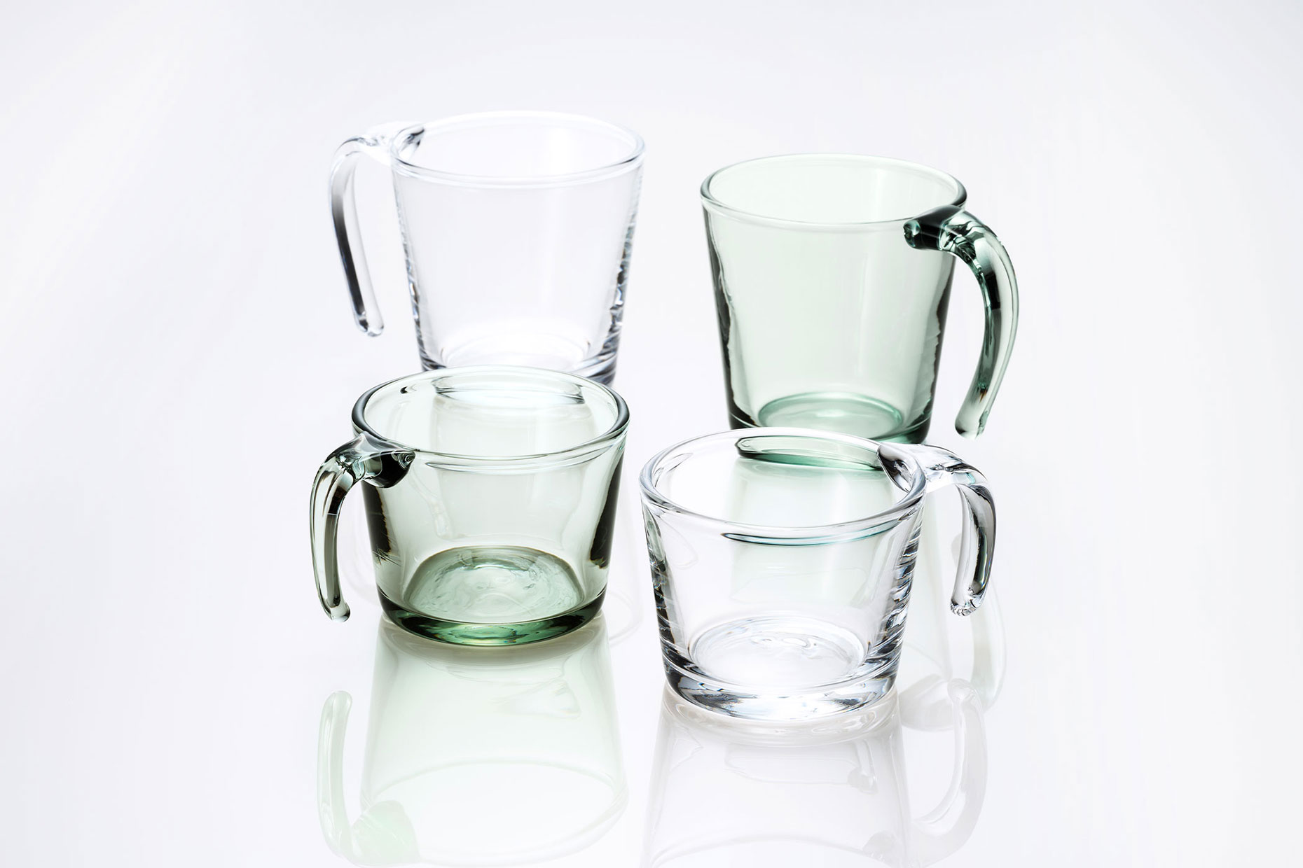 「作るごとに色が変わる」リサイクルカラーは、いろいろな色のガラスくずを混ぜ合わせ溶かすため、どんな色ができるかは、私たちも想像できません。どうぞ、一期一会をお楽しみください。